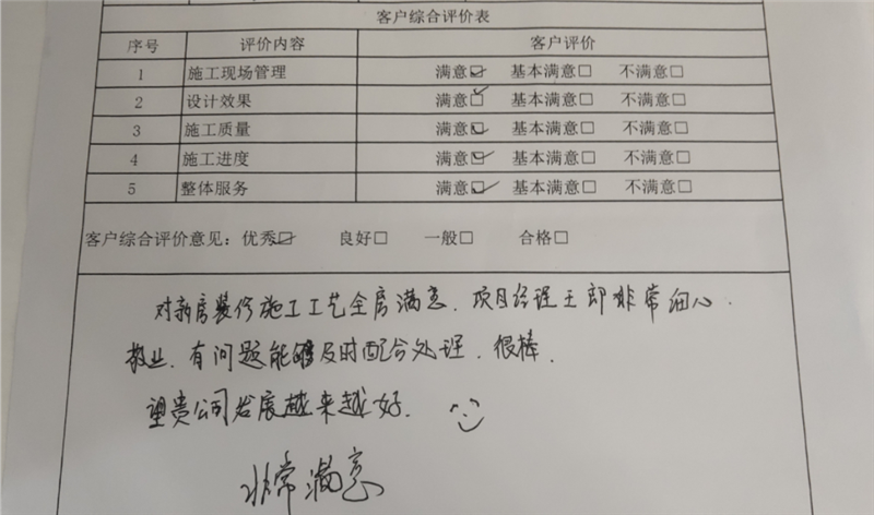 客戶的好評是生命線,竣工驗收單客戶的衷心好評是我們不斷前進(jìn)的動力