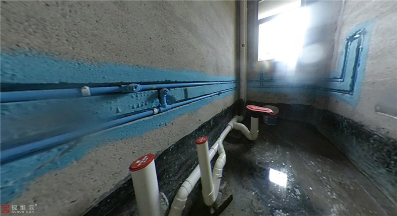 防水施工:排水管布施多個排水口的應用斜三通,采取樹空 丫形布管。橫向布管90*灣,應用二個45°灣頭連接。目的:排水通暢。隱蔽工程VR