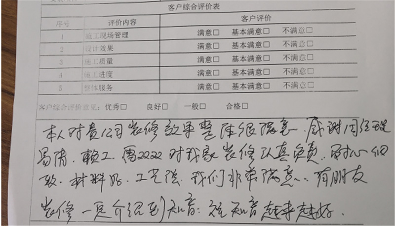 竣工驗收單,客戶對我們知音作出衷心好評!客戶的滿意是我們不變的初衷。