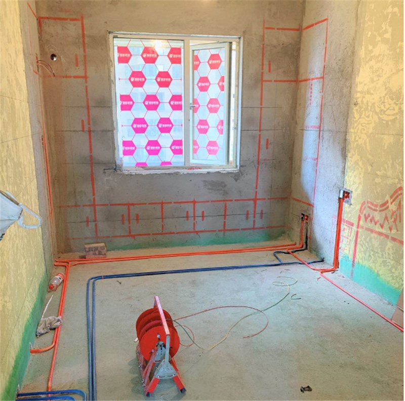 .水電施工規(guī)范:根據(jù)設計要求,確定電路管線走向,標高及開關插座的位置 2、電源線配線時,所用導線截面積應滿足用電設備 的最大輸出功率 3、暗線敷設必須套管,當管線長度超過15米或有2個直角彎時慶增設拉線盒,暗裝表面與墻面應留10mm的批蕩位(粘貼性、熱脹冷縮) 4、同一回路,電線應穿入同一根管內,但管內總數(shù)不應超過6根,電線總截面積(包括絕緣皮)不應超過管內截面積的40% 5、強電線與弱電線不能穿入同一根管內,不能共用一個底盒或相互經過底盒,以防發(fā)生磁場干擾 3.所有水電線管敷設都應保持橫平豎直,強弱電水平間距應≥300mm,嚴禁同槽或同管敷設。