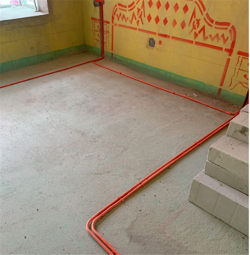 ⒉地面為地磚或水泥砂漿找平時,為點(diǎn)對點(diǎn)布線,減少彎管。