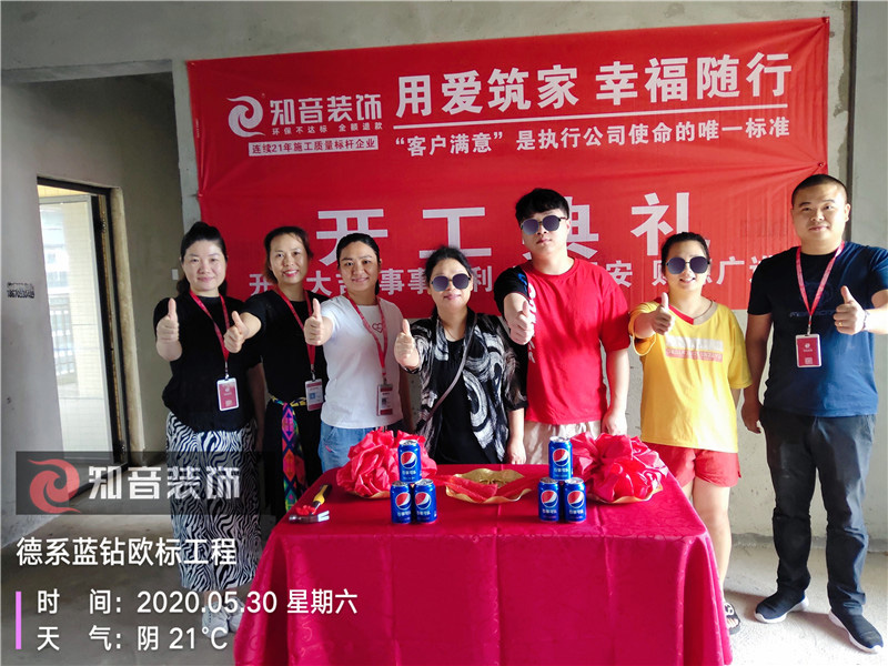 開工典禮:經過原屋驗收,電梯公共過道保護,鏟除墻皮,黃墻綠地保護,全房放線定位,全房放樣安全防護、安全文明標牌懸掛、窗貼、門貼、燃氣表電表箱保護、消防器材布置,以上各項工作完畢,舉行儀式,標志正式進入施工階段。