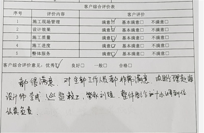 竣工驗收單,業(yè)主對我們知音作出衷心評價!客戶的滿意是我們不變的初衷。我要分享