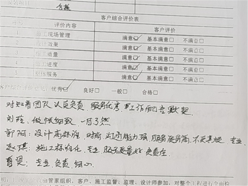 竣工驗(yàn)收單,客戶對(duì)我們知音作出衷心好評(píng)!客戶的滿意是我們不變的初衷。