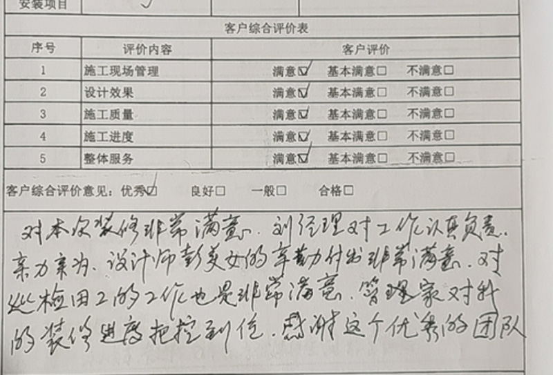 竣工驗收單,客戶對我們知音作出衷心好評!客戶的滿意是我們不變的初衷。