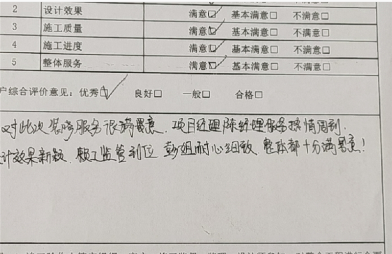 竣工驗(yàn)收單,客戶對(duì)我們知音作出衷心好評(píng)!客戶的滿意是我們不變的初衷。