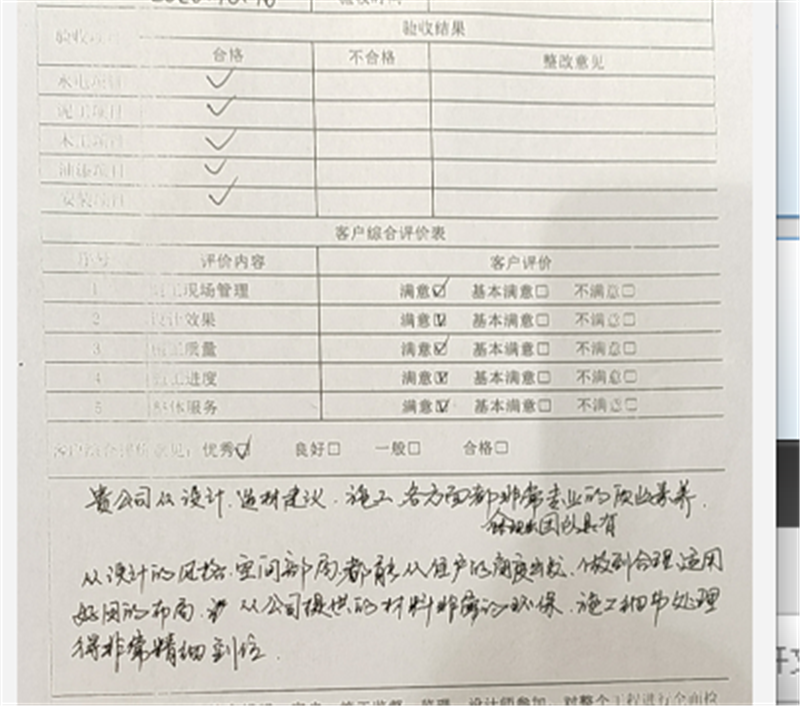 竣工驗(yàn)收單,客戶對(duì)我們知音作出衷心好評(píng)!客戶的滿意是我們不變的初衷。