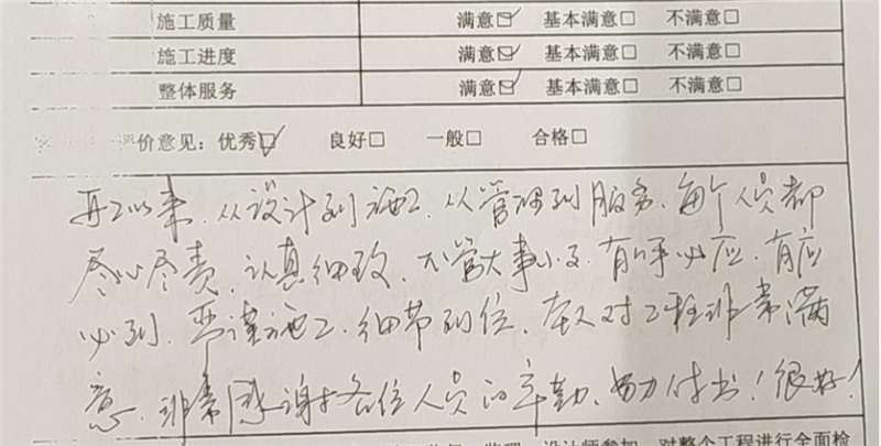 竣工驗(yàn)收單,客戶對(duì)我們知音作出衷心好評(píng)!客戶的滿意是我們不變的初衷。
