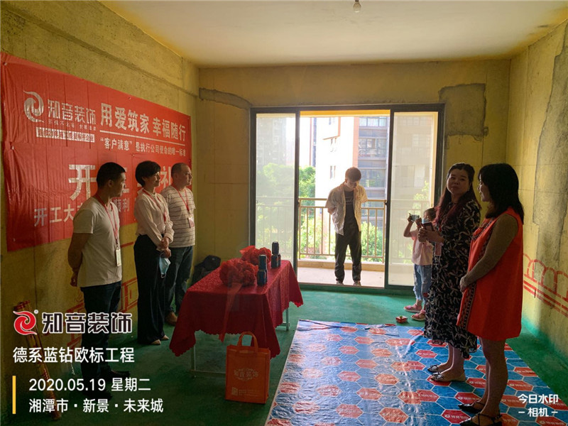開工典禮:經(jīng)過原屋驗收,電梯公共過道保護,鏟除墻皮,黃墻綠地保護,全房放線定位,全房放樣安全防護、安全文明標牌懸掛、窗貼、門貼、燃氣表電表箱保護、消防器材布置,以上各項工作完畢,舉行儀式,標志正式進入施工階段。 同時以表祝賀,也表示感謝各位業(yè)主選擇我們知音,知音將會用愛筑起每一個家!