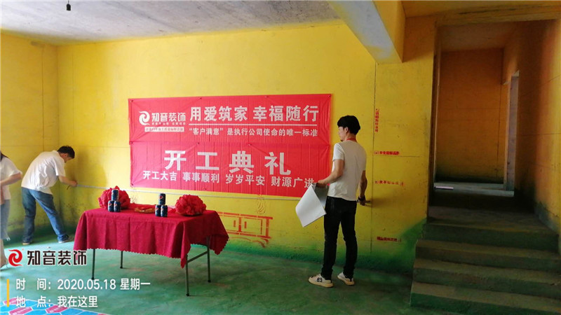 開工典禮:經(jīng)過原屋驗(yàn)收,電梯公共過道保護(hù),鏟除墻皮,黃墻綠地保護(hù),全房放線定位,全房放樣安全防護(hù)、安全文明標(biāo)牌懸掛、窗貼、門貼、燃?xì)獗黼姳硐浔Wo(hù)、消防器材布置,以上各項(xiàng)工作完畢,舉行儀式,標(biāo)志正式進(jìn)入施工階段。 同時(shí)以表祝賀,也表示感謝各位業(yè)主選擇我們知音,知音將會用愛筑起每一個(gè)家!