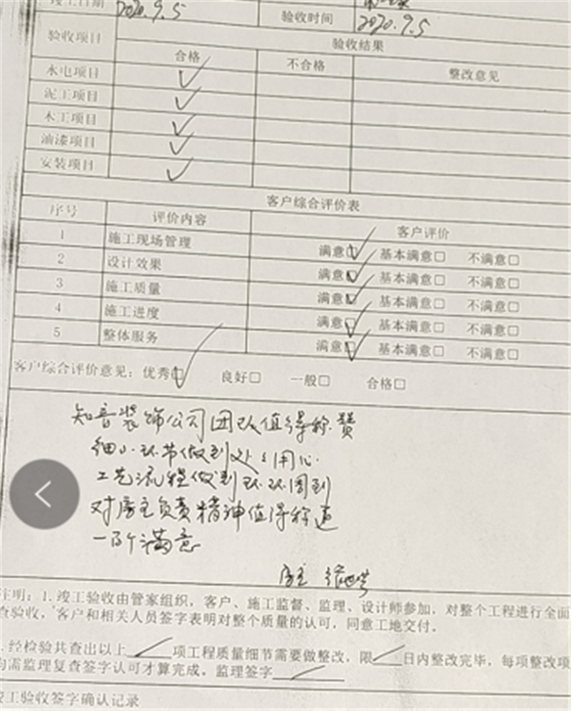 竣工驗(yàn)收單,客戶對我們知音作出衷心好評!客戶的滿意是我們不變的初衷。我要分享