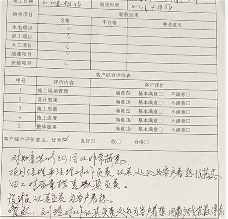 竣工驗收單,客戶對我們知音作出衷心好評!客戶的滿意是我們不變的初衷。