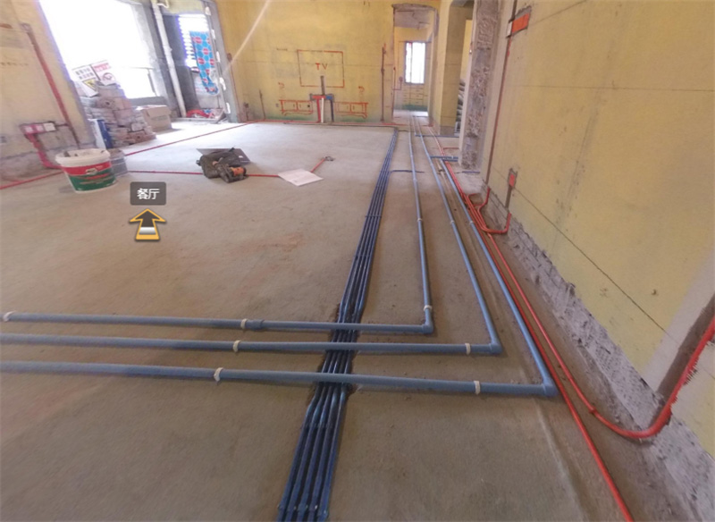 ⒉地面為地磚或水泥砂漿找平時(shí),為點(diǎn)對(duì)點(diǎn)布線,減少?gòu)澒堋?/span>