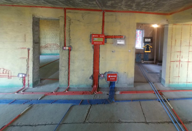 水電施工規(guī)范:1.根據(jù)設(shè)計(jì)要求,確定電路管線走向,標(biāo)高及開關(guān)插座的位置 2、電源線配線時(shí),所用導(dǎo)線截面積應(yīng)滿足用電設(shè)備 的最大輸出功率 3、暗線敷設(shè)必須套管,當(dāng)管線長(zhǎng)度超過15米或有2個(gè)直角彎時(shí)慶增設(shè)拉線盒,暗裝表面與墻面應(yīng)留10mm的批蕩位(粘貼性、熱脹冷縮) 4、同一回路,電線應(yīng)穿入同一根管內(nèi),但管內(nèi)總數(shù)不應(yīng)超過6根,電線總截面積(包括絕緣皮)不應(yīng)超過管內(nèi)截面積的40% 5、強(qiáng)電線與弱電線不能穿入同一根管內(nèi),不能共用一個(gè)底盒或相互經(jīng)過底盒,以防發(fā)生磁場(chǎng)干擾 3.所有水電線管敷設(shè)都應(yīng)保持橫平豎直,強(qiáng)弱電水平間距應(yīng)≥300mm,嚴(yán)禁同槽或同管敷設(shè)中期施工