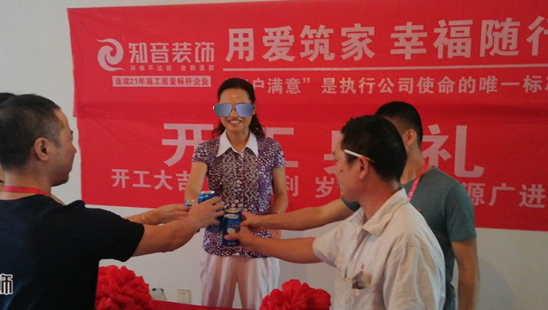 開工典禮:經(jīng)過原屋驗收,電梯公共過道保護,鏟除墻皮,黃墻綠地保護,全房放線定位,全房放樣安全防護、安全文明標(biāo)牌懸掛、窗貼、門貼、燃氣表電表箱保護、消防器材布置,以上各項工作完畢,舉行儀式,標(biāo)志正式進入施工階段。 同時以表祝賀,也表示感謝各位業(yè)主選擇我們知音,知音將會用愛筑起每一個家!