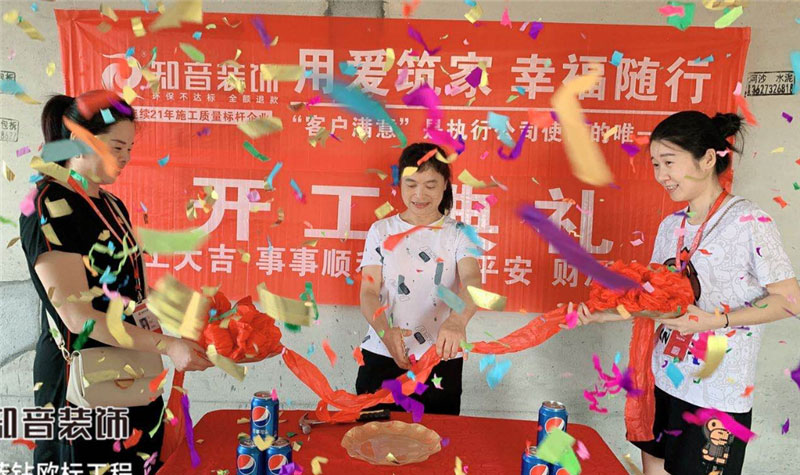開工典禮:開工典禮:經過原屋驗收,電梯公共過道保護,鏟除墻皮,黃墻綠地保護,全房放線定位,全房放樣安全防護、安全文明標牌懸掛、窗貼、門貼、燃氣表電表箱保護、消防器材布置,以上各項工作完畢,舉行儀式,標志正式進入施工階段。 同時以表祝賀,也表示感謝各位業(yè)主選擇我們知音,知音將會用愛筑起每一個家!