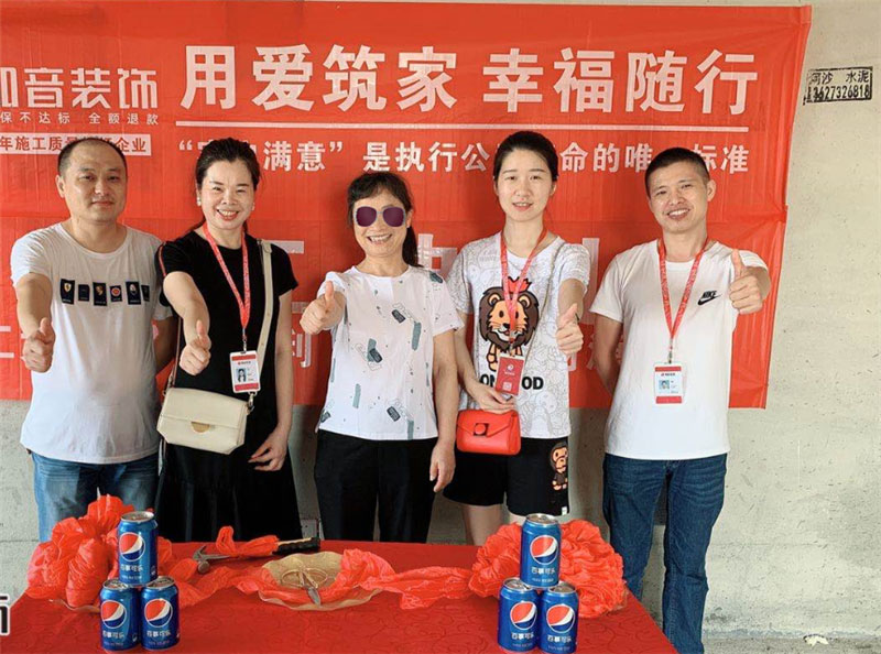 開工典禮:開工典禮:經過原屋驗收,電梯公共過道保護,鏟除墻皮,黃墻綠地保護,全房放線定位,全房放樣安全防護、安全文明標牌懸掛、窗貼、門貼、燃氣表電表箱保護、消防器材布置,以上各項工作完畢,舉行儀式,標志正式進入施工階段。