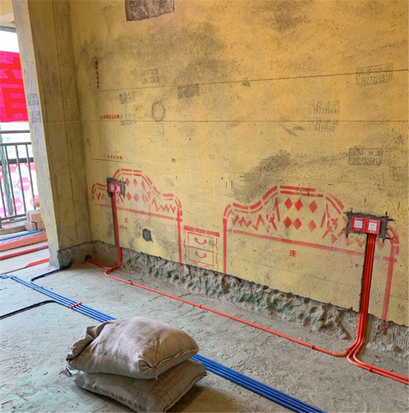 6.所有水電線管敷設(shè)都應(yīng)保持橫平豎直,強(qiáng)弱電水平間距應(yīng)≥300mm,嚴(yán)禁同槽或同管敷設(shè)。