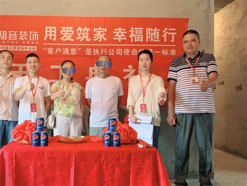 開工典禮:經(jīng)過原屋驗收,電梯公共過道保護,鏟除墻皮,黃墻綠地保護,全房放線定位,全房放樣安全防護、安全文明標(biāo)牌懸掛、窗貼、門貼、燃?xì)獗黼姳硐浔Wo、消防器材布置,以上各項工作完畢,舉行儀式,標(biāo)志正式進入施工階段。 同時以表祝賀,也表示感謝各位業(yè)主選擇我們知音,知音將會用愛筑起每一個家!