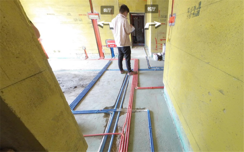 管道安裝應(yīng)橫平豎直,緊貼墻體、頂面走,鋪設(shè)牢固、無晃動,每隔800 mm加固定卡1個或吊桿1個。
