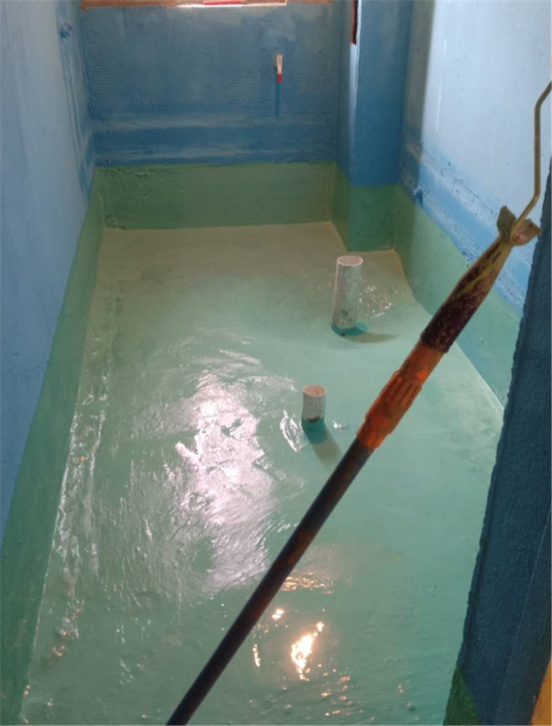 (3)涂膜防水層的基層應(yīng)牢固,表面潔凈、平整,陰陽角處呈圓弧形或鈍角,聚氨脂底漆刷均勻、無漏涂。