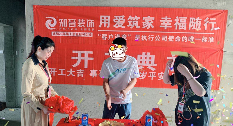 開工典禮:經(jīng)過原屋驗(yàn)收,電梯公共過道保護(hù),鏟除墻皮,黃墻綠地保護(hù),全房放線定位,全房放樣安全防護(hù)、安全文明標(biāo)牌懸掛、窗貼、門貼、燃?xì)獗黼姳硐浔Wo(hù)、消防器材布置,以上各項(xiàng)工作完畢,舉行儀式,標(biāo)志正式進(jìn)入施工階段。 同時(shí)以表祝賀,也表示感謝各位業(yè)主選擇我們知音,知音將會(huì)用愛筑起每一個(gè)家!