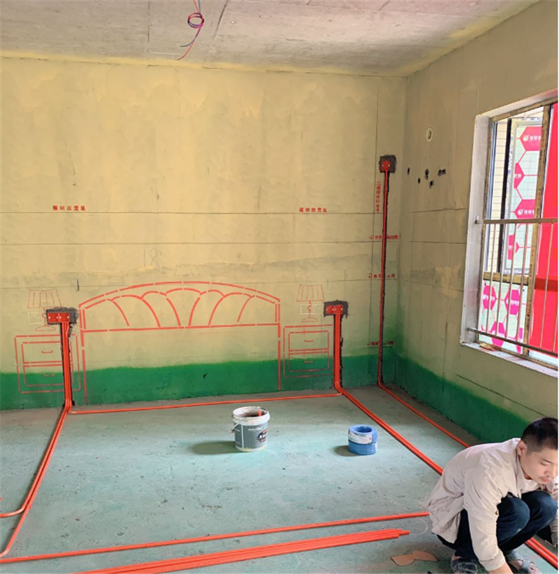 ⒉地面為地磚或水泥砂漿找平時,為點對點布線,減少彎管。