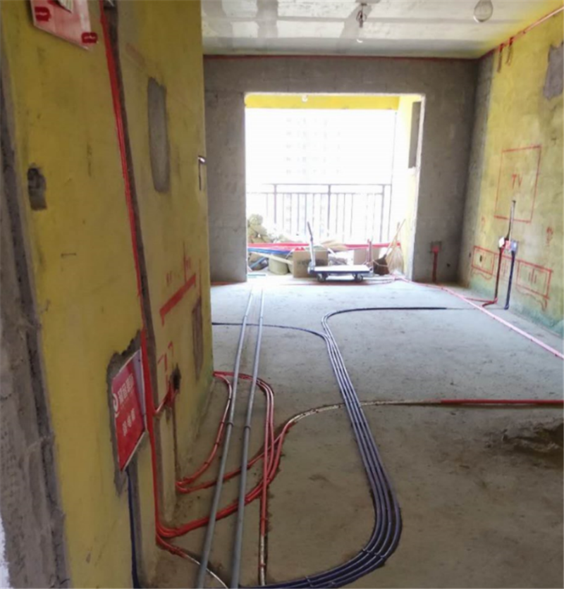 ⒉地面為地磚或水泥砂漿找平時(shí),為點(diǎn)對點(diǎn)布線,減少彎管。