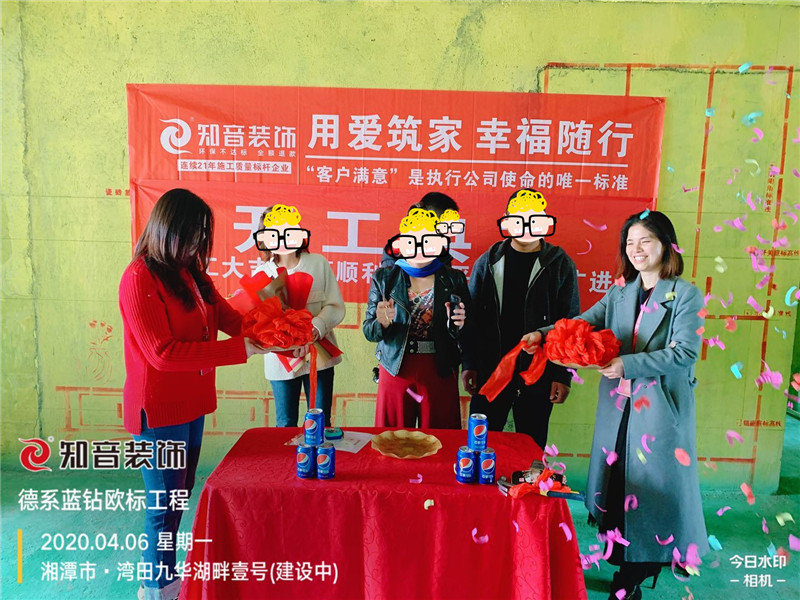 開工典禮:經(jīng)過原屋驗收,電梯公共過道保護,鏟除墻皮,黃墻綠地保護,全房放線定位,全房放樣安全防護、安全文明標牌懸掛、窗貼、門貼、燃氣表電表箱保護、消防器材布置,以上各項工作完畢,舉行儀式,標志正式進入施工階段。 同時以表祝賀,也表示感謝各位業(yè)主選擇我們知音,知音將會用愛筑起每一個家!