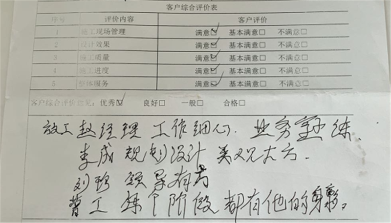 竣工驗收單,客戶對我們知音作出衷心好評!客戶的滿意是我們不變的初衷。