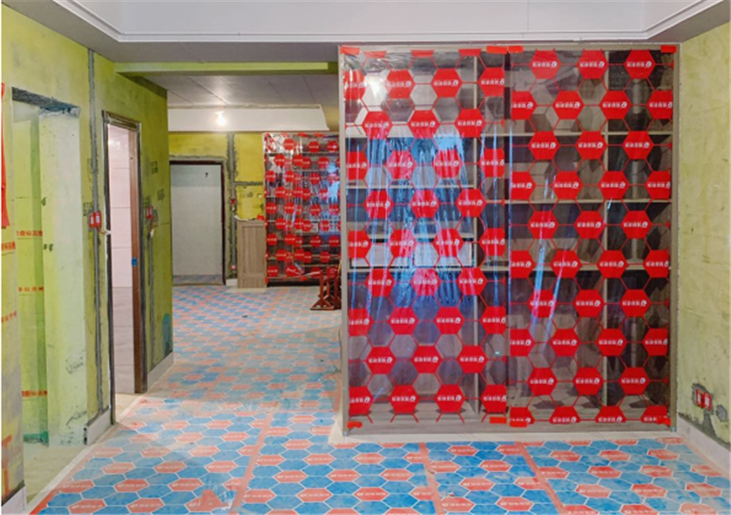 木工施工完畢,用專用透明膜封閉,防止灰塵進(jìn)入同時(shí)也避免了在施工過程中可能發(fā)生的刮擦對柜體的損害。尾期施工