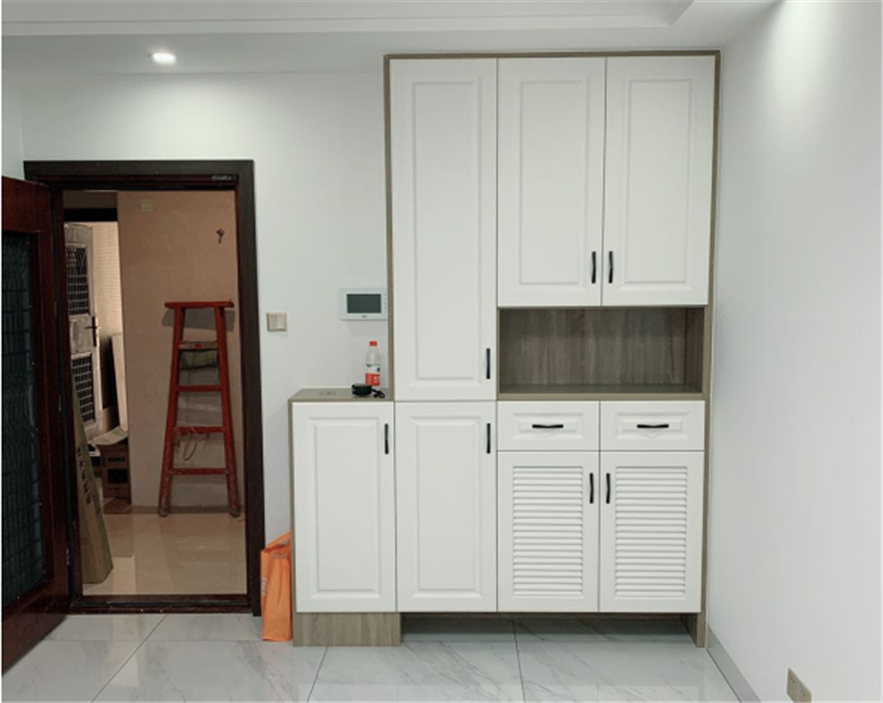 木工施工完畢,用專用透明膜封閉,防止灰塵進(jìn)入同時(shí)也避免了在施工過程中可能發(fā)生的刮擦對柜體的損害。