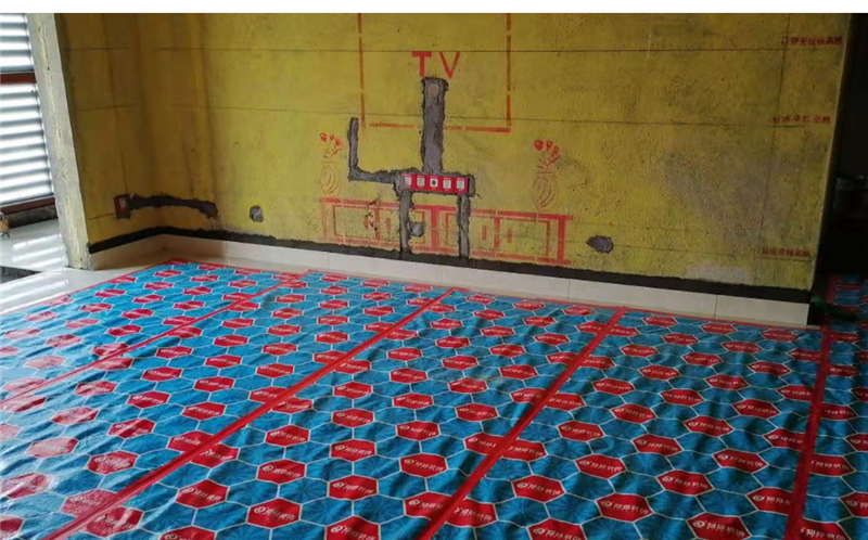 ⒉地面為地磚或水泥砂漿找平時(shí),為點(diǎn)對(duì)點(diǎn)布線,減少?gòu)澒堋?/span>