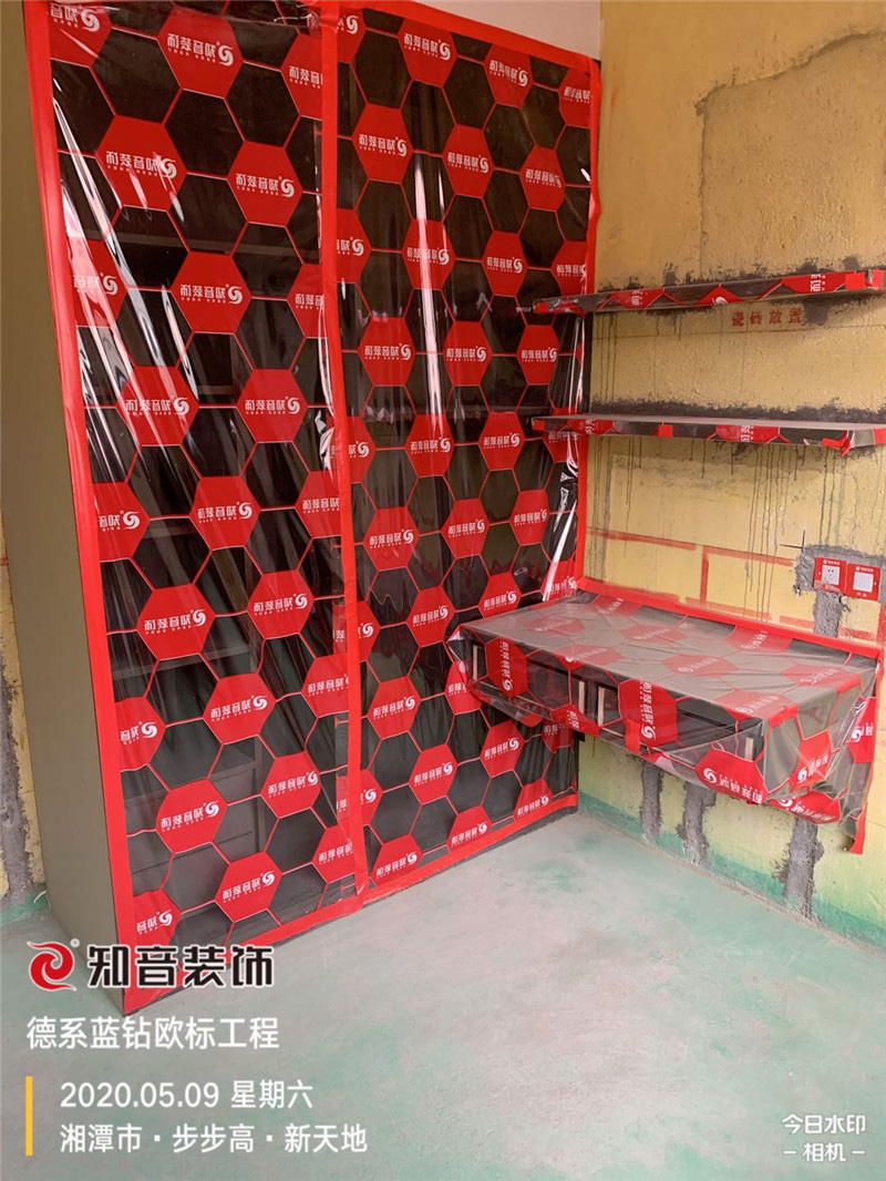 木工施工完畢,用專用透明膜封閉,防止灰塵進(jìn)入同時(shí)也避免了在施工過程中可能發(fā)生的刮擦對(duì)柜體的損害。尾期施工#