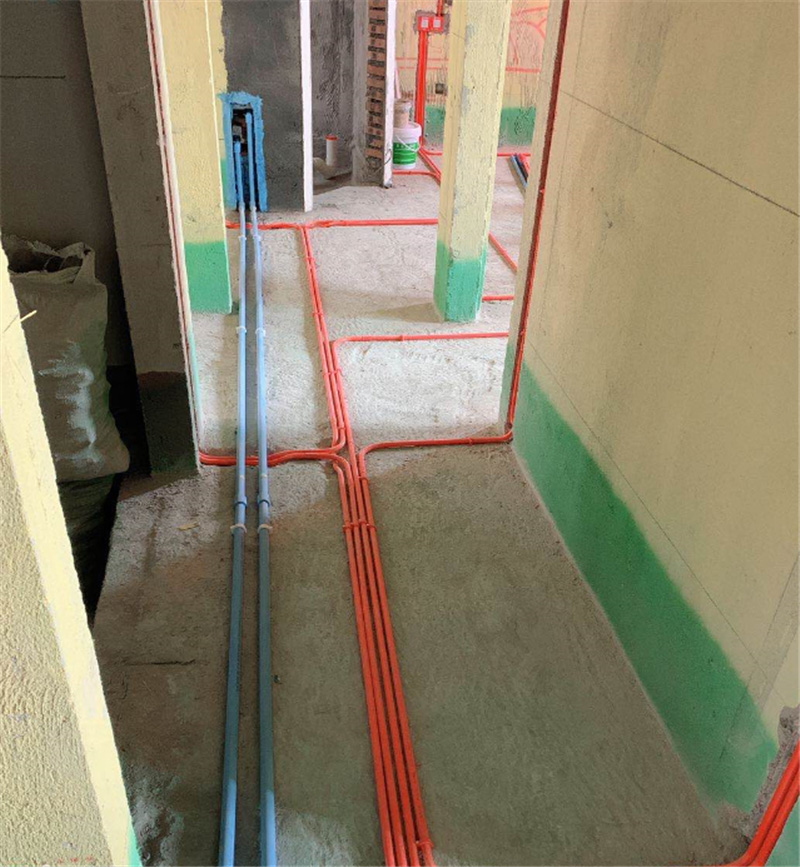 ⒉地面為地磚或水泥砂漿找平時(shí),為點(diǎn)對點(diǎn)布線,減少彎管。