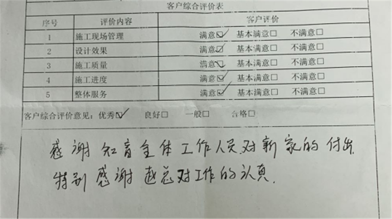 竣工驗(yàn)收單,客戶對我們知音作出衷心好評!客戶的滿意是我們不變的初衷。