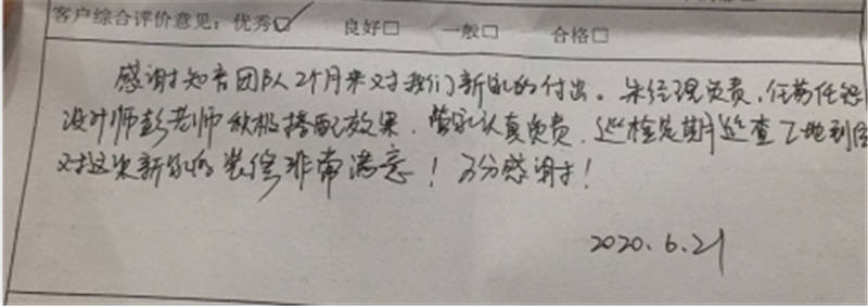 竣工驗(yàn)收單,客戶對(duì)我們知音作出衷心好評(píng)!客戶的滿意是我們不變的初衷。