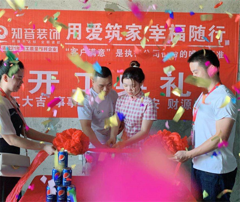開(kāi)工典禮:經(jīng)過(guò)原屋驗(yàn)收,電梯公共過(guò)道保護(hù),鏟除墻皮,黃墻綠地保護(hù),全房放線定位,全房放樣安全防護(hù)、安全文明標(biāo)牌懸掛、窗貼、門(mén)貼、燃?xì)獗黼姳硐浔Wo(hù)、消防器材布置,以上各項(xiàng)工作完畢,舉行儀式,標(biāo)志正式進(jìn)入施工階段。 同時(shí)以表祝賀,也表示感謝各位業(yè)主選擇我們知音,知音將會(huì)用愛(ài)筑起每一個(gè)家!