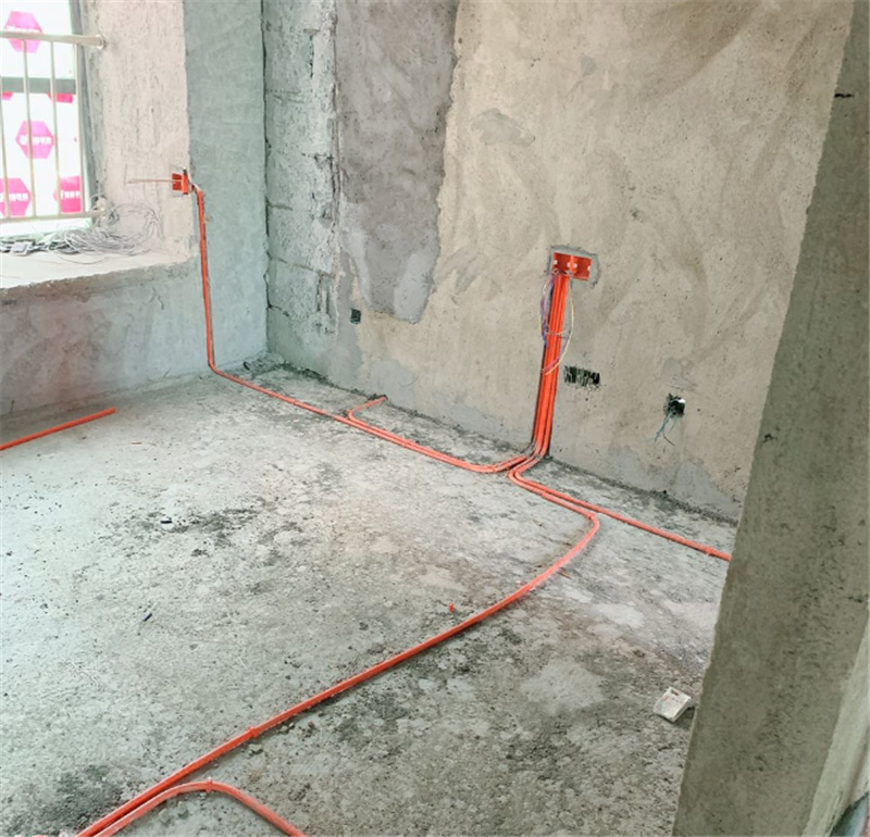 ⒉地面為地磚或水泥砂漿找平時(shí),為點(diǎn)對(duì)點(diǎn)布線,減少?gòu)澒堋?/span>