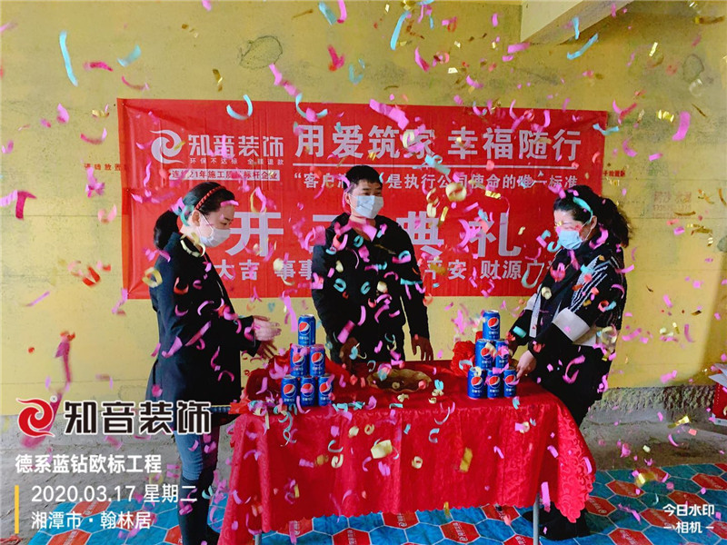 開工典禮:經(jīng)過原屋驗收,電梯公共過道保護,鏟除墻皮,黃墻綠地保護,全房放線定位,全房放樣安全防護、安全文明標(biāo)牌懸掛、窗貼、門貼、燃氣表電表箱保護、消防器材布置,以上各項工作完畢,舉行儀式,標(biāo)志正式進入施工階段。 同時以表祝賀,也表示感謝各位業(yè)主選擇我們知音,知音將會用愛筑起每一個家!
