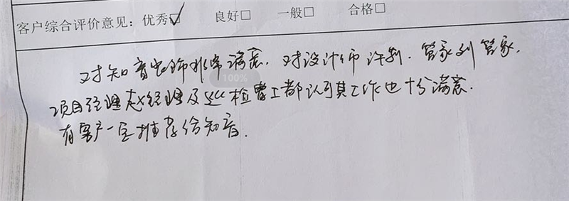 竣工驗收單,客戶對我們知音作出衷心好評!客戶的滿意是我們不變的初衷。