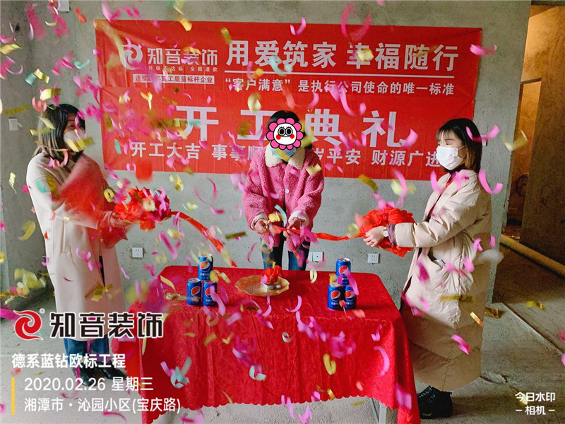 開工典禮:經(jīng)過原屋驗收,電梯公共過道保護(hù),鏟除墻皮,黃墻綠地保護(hù),全房放線定位,全房放樣安全防護(hù)、安全文明標(biāo)牌懸掛、窗貼、門貼、燃?xì)獗黼姳硐浔Wo(hù)、消防器材布置,以上各項工作完畢,舉行儀式,標(biāo)志正式進(jìn)入施工階段。 同時以表祝賀,也表示感謝各位業(yè)主選擇我們知音,知音將會用愛筑起每一個家!