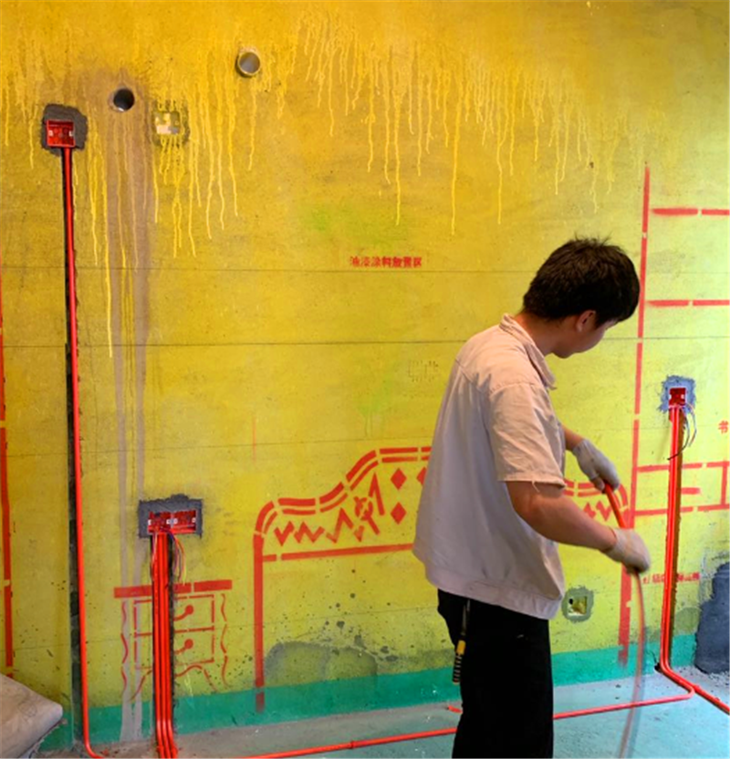 水電施工規(guī)范:根據(jù)設(shè)計(jì)要求,確定電路管線走向,標(biāo)高及開關(guān)插座的位置 2、電源線配線時(shí),所用導(dǎo)線截面積應(yīng)滿足用電設(shè)備 的最大輸出功率 3、暗線敷設(shè)必須套管,當(dāng)管線長度超過15米或有2個(gè)直角彎時(shí)慶增設(shè)拉線盒,暗裝表面與墻面應(yīng)留10mm的批蕩位(粘貼性、熱脹冷縮) 4、同一回路,電線應(yīng)穿入同一根管內(nèi),但管內(nèi)總數(shù)不應(yīng)超過6根,電線總截面積(包括絕緣皮)不應(yīng)超過管內(nèi)截面積的40% 5、強(qiáng)電線與弱電線不能穿入同一根管內(nèi),不能共用一個(gè)底盒或相互經(jīng)過底盒,以防發(fā)生磁場干擾 6所有水電線管敷設(shè)都應(yīng)保持橫平豎直,強(qiáng)弱電水平間距應(yīng)≥300mm,嚴(yán)禁同槽或同管敷設(shè)。