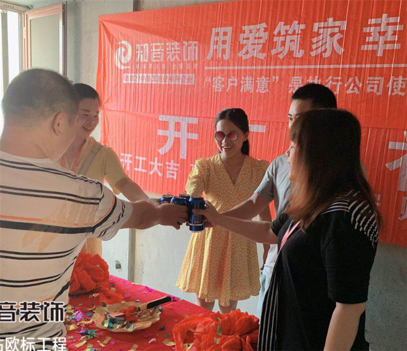 開工典禮:經(jīng)過原屋驗收,電梯公共過道保護,鏟除墻皮,黃墻綠地保護,全房放線定位,全房放樣安全防護、安全文明標牌懸掛、窗貼、門貼、燃氣表電表箱保護、消防器材布置,以上各項工作完畢,舉行儀式,標志正式進入施工階段。 同時以表祝賀,也表示感謝各位業(yè)主選擇我們知音,知音將會用愛筑起每一個家!