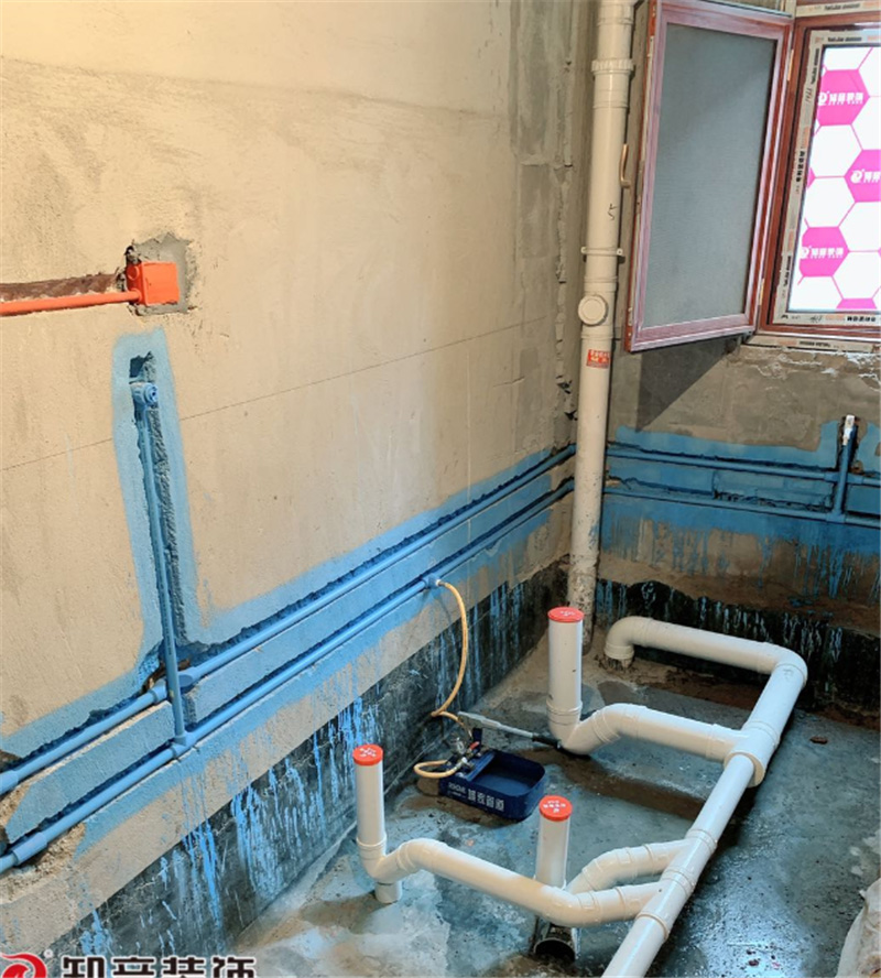 (3)廚房防水從地面返水200mm,有出水口的地方防水要高于出水口200mm,高度的兩倍。