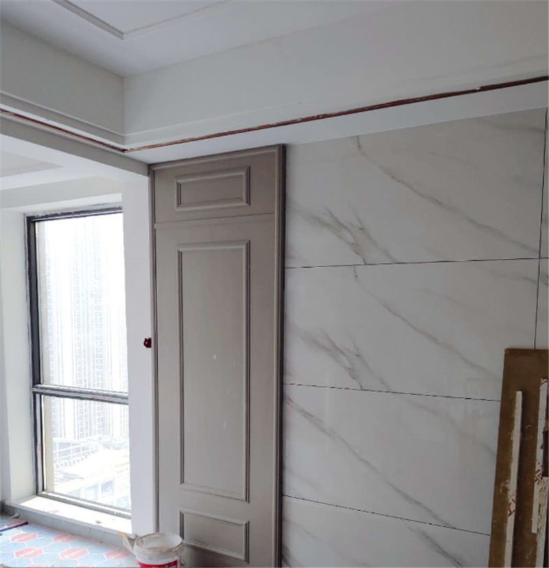 木工施工完畢,用專用透明膜封閉,防止灰塵進入同時也避免了在施工過程中可能發(fā)生的刮擦對柜體的損害。尾期施工#