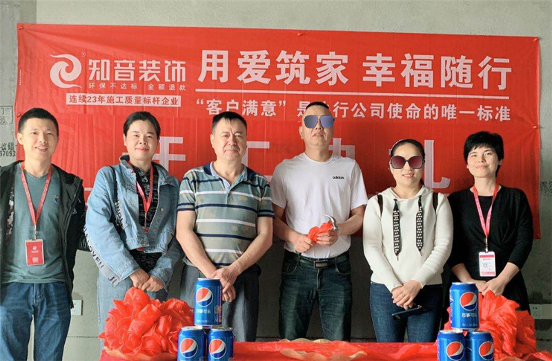開工典禮:經(jīng)過原屋驗收,電梯公共過道保護,鏟除墻皮,黃墻綠地保護,全房放線定位,全房放樣安全防護、安全文明標牌懸掛、窗貼、門貼、燃氣表電表箱保護、消防器材布置,以上各項工作完畢,舉行儀式,標志正式進入施工階段。 同時以表祝賀,也表示感謝各位業(yè)主選擇我們知音,知音將會用愛筑起每一個家!