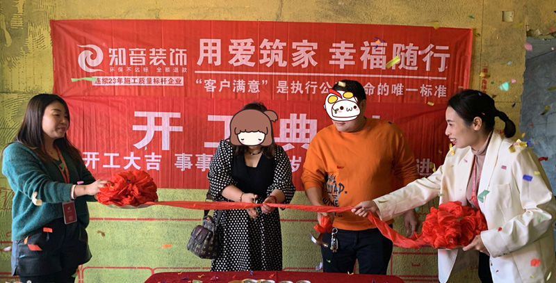 開(kāi)工典禮:開(kāi)工典禮:經(jīng)過(guò)原屋驗(yàn)收,電梯公共過(guò)道保護(hù),鏟除墻皮,黃墻綠地保護(hù),全房放線定位,全房放樣安全防護(hù)、安全文明標(biāo)牌懸掛、窗貼、門(mén)貼、燃?xì)獗黼姳硐浔Wo(hù)、消防器材布置,以上各項(xiàng)工作完畢,舉行儀式,標(biāo)志正式進(jìn)入施工階段。 同時(shí)以表祝賀,也表示感謝各位業(yè)主選擇我們知音,知音將會(huì)用愛(ài)筑起每一個(gè)家!