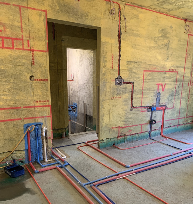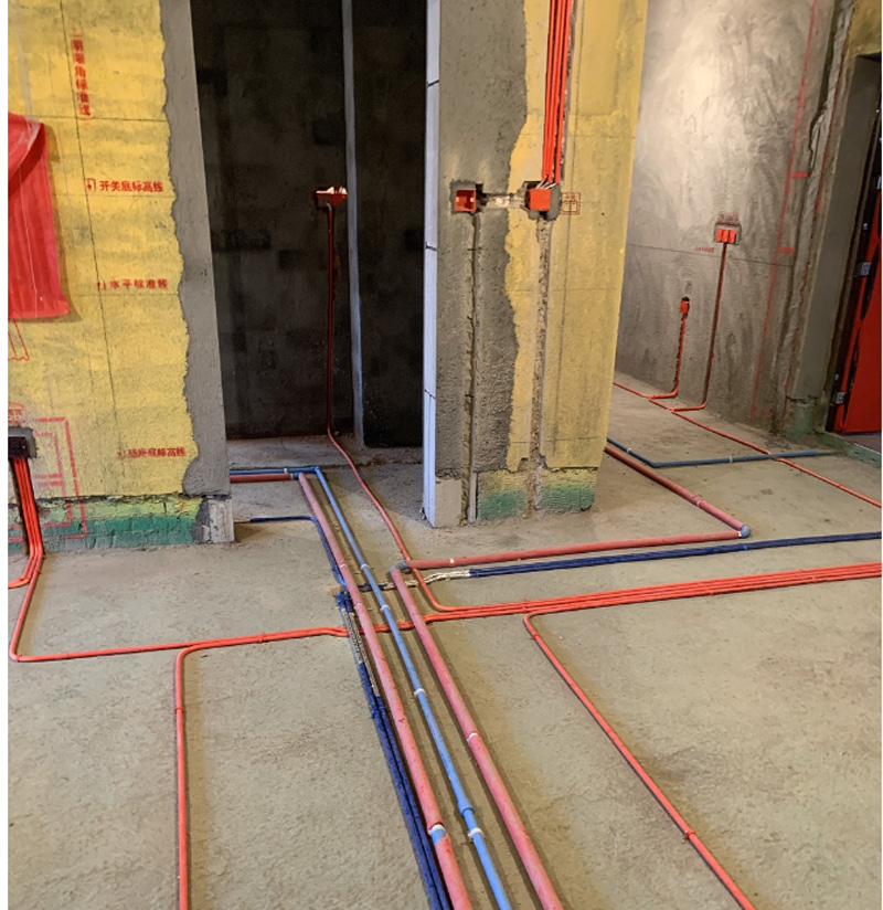 ⒉地面為地磚或水泥砂漿找平時(shí),為點(diǎn)對(duì)點(diǎn)布線,減少?gòu)澒堋?/span>