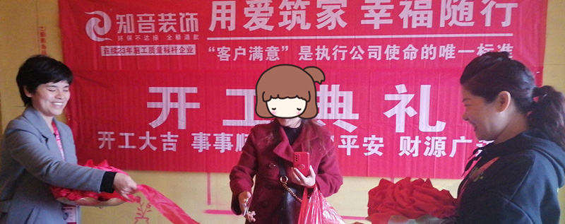開工典禮:經(jīng)過原屋驗(yàn)收,電梯公共過道保護(hù),鏟除墻皮,黃墻綠地保護(hù),全房放線定位,全房放樣安全防護(hù)、安全文明標(biāo)牌懸掛、窗貼、門貼、燃?xì)獗黼姳硐浔Wo(hù)、消防器材布置,以上各項(xiàng)工作完畢,舉行儀式,標(biāo)志正式進(jìn)入施工階段。 同時(shí)以表祝賀,也表示感謝各位業(yè)主選擇我們知音,知音將會(huì)用愛筑起每一個(gè)家!